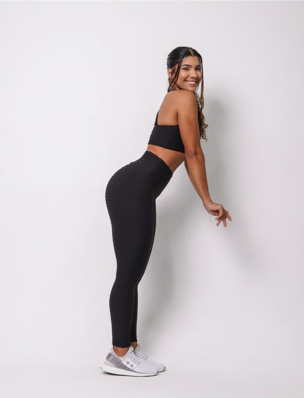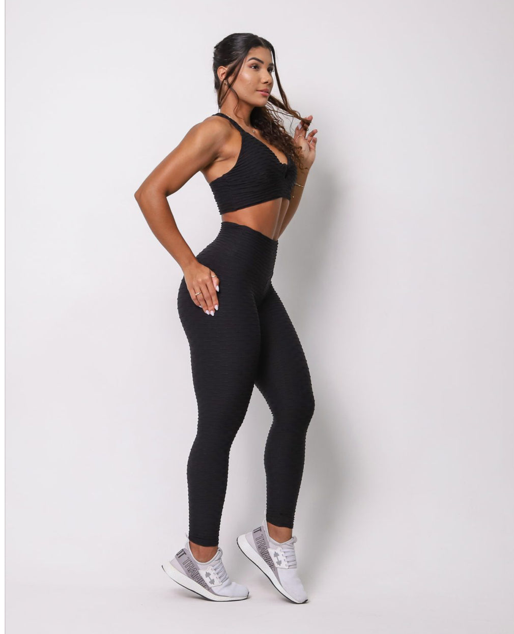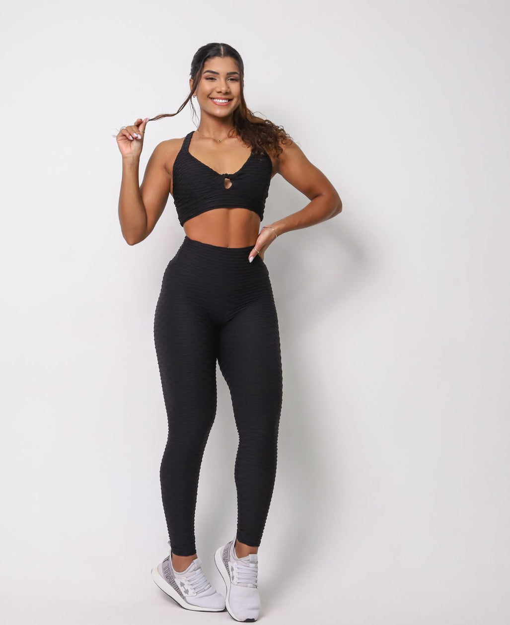 This set, made from textured polyamide, guarantees elasticity and support. With its zero transparency material, it is ideal for high-impact exercises!