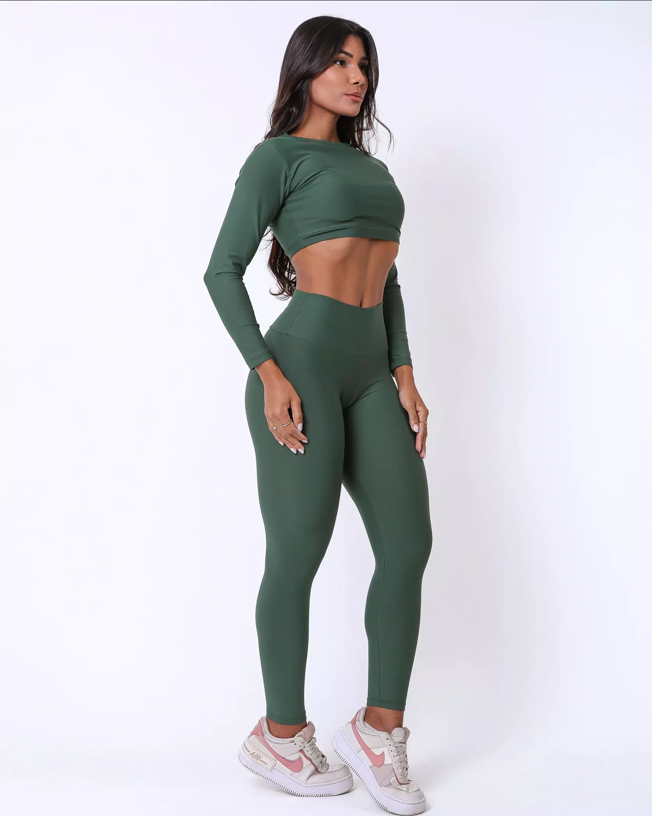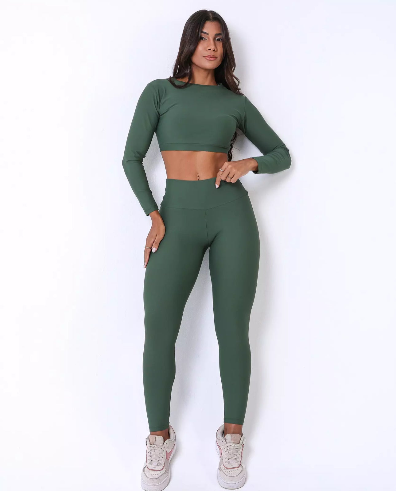 Made with premium polyamide, this set ensures elasticity, support, and durability, while the solid color adds a sophisticated and modern touch to your activewear look.