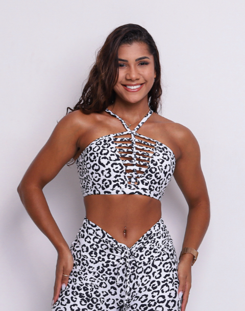Adriana White Cheetah Sports bra