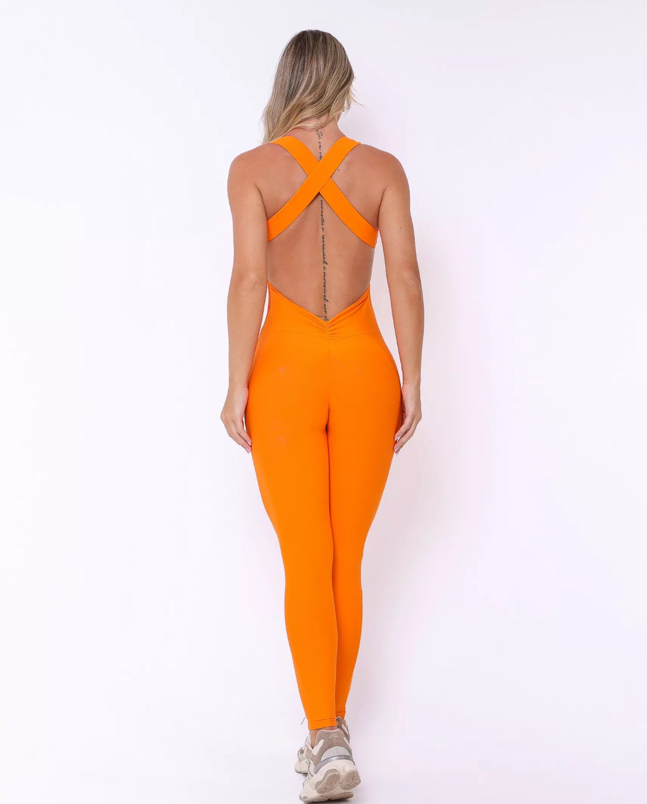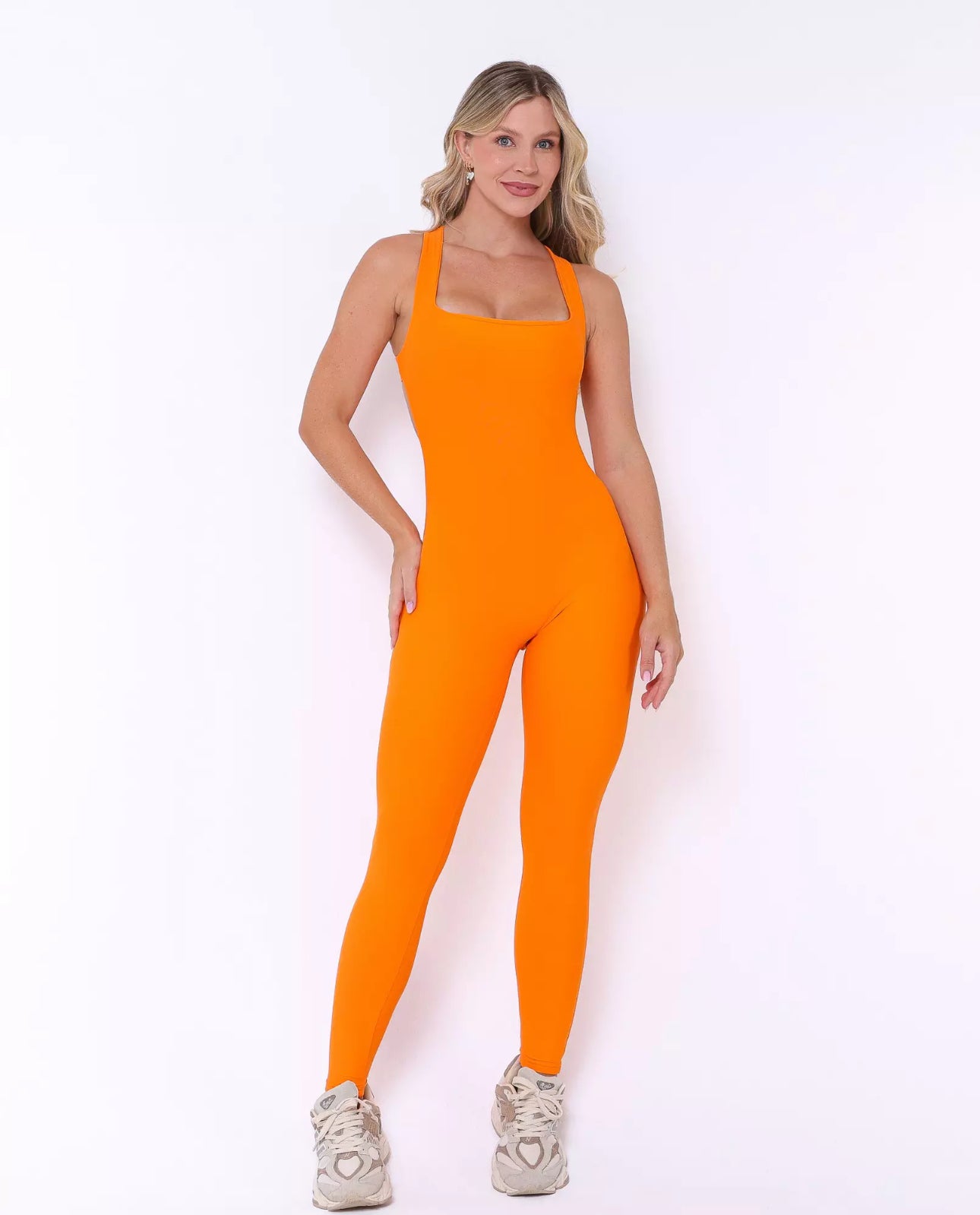 This brand-new long jumpsuit is impossible not to fall in love with! Designed with wide straps and no front seams, it features a soft square neckline and a deep V-shaped open back with thick crossed straps that highlight and flatter your figure. A true standout piece that blends elegance, comfort, and performance.