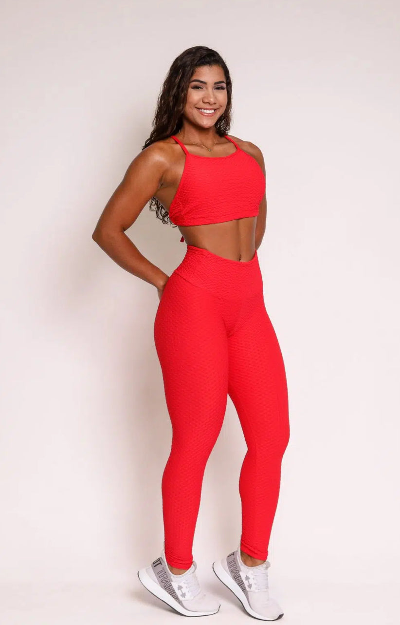 Lily Red Soft Textured Leggings