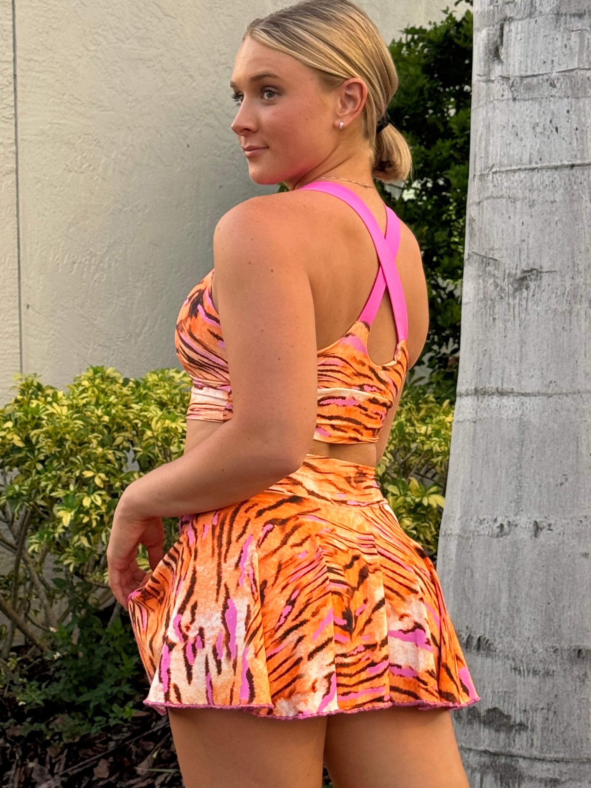 Our workout skort is designed for active women who refuse to compromise on style or performance. The flattering fit and stylish design make it a standout piece in your workout wardrobe. Pair it with your favorite sports bra or tank top for a complete, chic look.